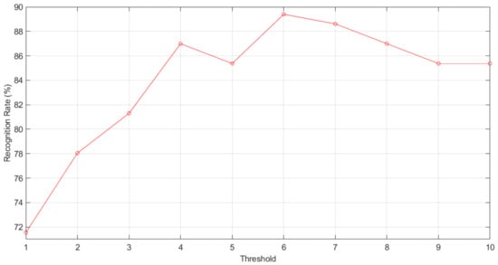 Recognition rate according to LTP threshold.