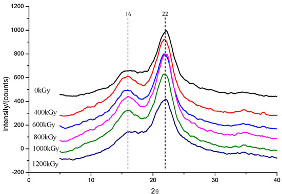 - Sun, J.; Xu, L.; Ge, M.; Zhai, M. Radiation degradation of microcrystalline cellulose in solid status. J. Appl. Polym. Sci. 2013, 127, 1630–1636. [Google Scholar] [CrossRef]