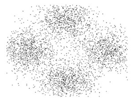 In order to verify the effectiveness of the algorithm, this paper uses Matlab to simulate phase-shift keying signals in digital communication systems to obtain the constellation diagrams of BPSK, QPSK and 8PSK at six low SNRs, which range from 1 to 12 dB. Figure 3, Figure 4 and Figure 5 are the constellation diagrams of the three signals when the SNR is 6 dB. The symbol rate of each signal is 1200 Bd, the number of symbols is 4000, the carrier frequency is 4800 Hz and the sampling frequency is 16 × 4800 Hz. Gaussian white noise is added to simulate the transmission of three signals on the Gaussian channel. At the same time, a Tensorflow-1.8.0+Keras-2.2.4 framework was built to train the InceptionResNetV2-TA network. The data set required for the experiments includes a training set and a test set. There are 9000 constellation maps in the training dataset and 2250 constellation maps in the test dataset. By training the network, it is able to classify the constellation diagrams of the three signals at low SNR, so as to correctly identify the digital signal modulation method.