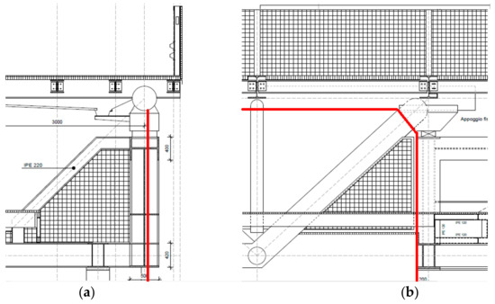 In Figure 4 the cross sections of the simply supported truss beam at the bearings are shown. The red line represents the path followed by the laser scanner during the acquisitions in line-scan mode.