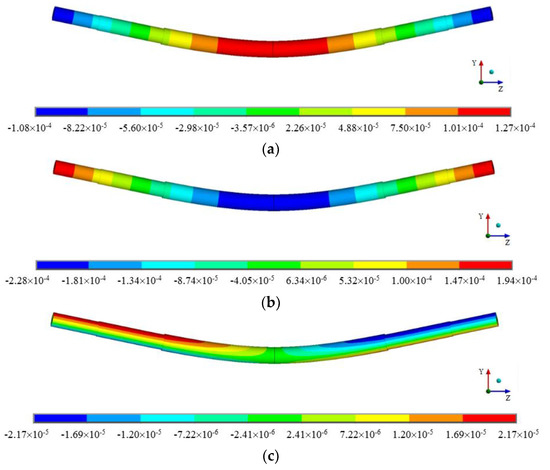 To assure solving stability during dynamics analysis of structures, a damping matrix is usually needed to consider influences of damping on structural movements in practical engineering. According to the viscous damping theory, the rotor damping is proportional to the vibration velocity and its acting direction is opposite to the velocity. Therefore, a proportional damping was applied onto the entire finite element analysis model. This implies that the system damping matrix [C] in Equation (6) is approximately treated as the linear combination of mass matrix [M] and the stiffness matrix [K], as expressed in the Equation (10)
