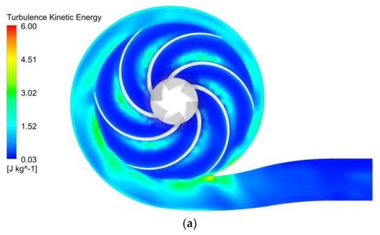- Kye, B.; Park, K.; Choi, H.; Lee, M.; Kim, J.H. Flow characteristics in a volute-type centrifugal pump using large eddy simulation. Int. J. Heat Fluid Flow 2018, 72, 52–60. [Google Scholar] [CrossRef]