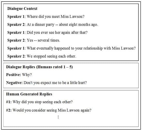 - Lowe, R.; Serban, I.V.; Noseworthy, M.; Charlin, L.; Pineau, J. On the evaluation of dialogue systems with next utterance classification. In Proceedings of the SIGDIAL 2016 Conference, Los Angeles, CA, USA, 13–15 September 2016. [Google Scholar]