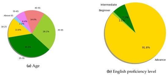 This section presents the description of the HUMOD dataset and insights on human annotations. The users’ demographics obtained are shown in Figure 5. The aim is to achieve human perception towards dialogue across the age groups, and we managed to achieve diversity among users, as shown in Figure 5a. The gender ratio obtained was 46% of male and 54% female, and users were also not restricted to their geography. The majority of the users (91.8%) were having advanced English level understanding as can been seen in Figure 5b, which makes the HUMOD dataset of high-quality.