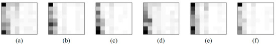 Six fault types of gray scale image. (a) normal condition, (b) inner race fault, (c) outer race fault, (d) cage fault, (e) inner and outer race fault, (f) inner race, ball, cage and outer race fault.