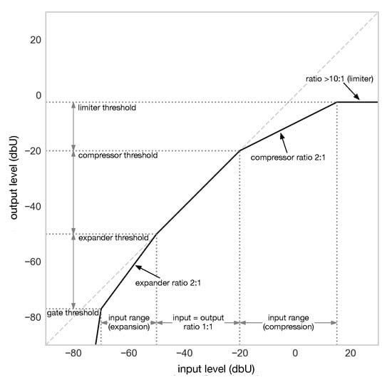 - Jeffs, R.; Holden, S.; Bohn, D. Dynamics Processors—Technology & Application Tips; RaneNote 155; Rane Corporation: Mukilteo, WA, USA, 2005. [Google Scholar]