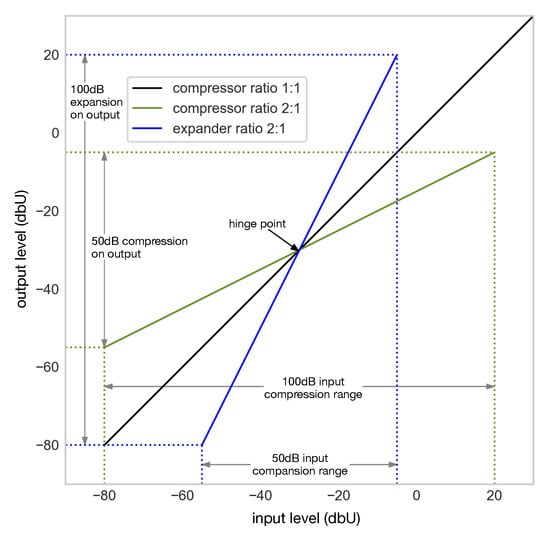 - McNally, G.W. Dynamic range control of digital audio signals. J. Audio Eng. Soc. 1984, 32, 316–327. [Google Scholar]