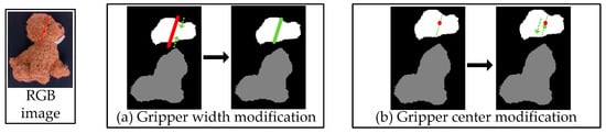 Grasp pose modification of (a) the gripper width and (b) the gripper center.
