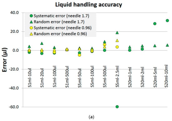 Speed and positioning performance tests were already reported in [14], and their results are summarised in Table 1. In this paper, liquid handling and the standalone performance are analysed more comprehensively.