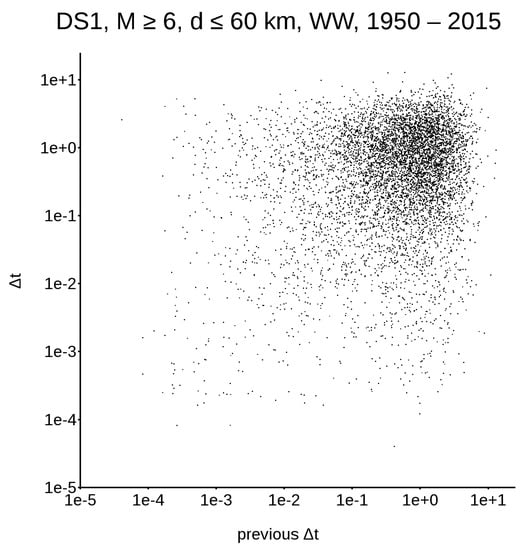 The ISC-GEM catalog is a worldwide instrumental catalog, spanning from 1904 to 2015. The main set I selected (DS1) considers magnitude M ≥ 6.00 and depth D ≤ 60 km. The time interval goes from 1950 to 2015, as 1950 seemed to represent a turning point in the completeness of the catalog such that, for the purposes of this paper, the set could be considered to be complete. A few tens of events, however, had to be discarded, as many large events were, in fact, multiple events; global catalogs often fail to detect these, and the completeness in such cases is almost null. An example I am personally aware of [