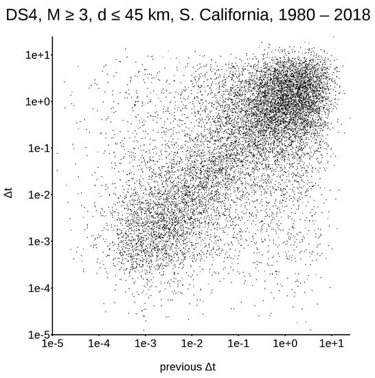 The fourth dataset (DS4) is composed of all the earthquakes reported by the Southern California Earthquake Center with magnitude M ≥ 3.00 between 1980 and 2018. It is made up of 11,852 events. I chose this magnitude threshold for two reasons; it ensures completeness also in the most peripheral areas—particularly offshore—and it does the same for the aftermath of the largest events.