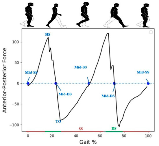 Healthy subject anterior-posterior force segmentation (SS: Single Stance, DS: Double Stance, TO: Toe off, HS: Heel strike).