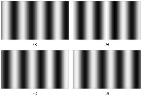 Four-step phase-shift fringe pattern with 64 fringes: (a) phase shift is 0, (b) phase shift is , (c) phase shift is , (d) phase shift is .