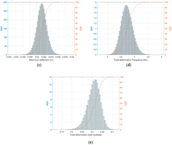The interpretation of the results of a Monte Carlo simulation analysis is based on statistical methods. The statistical procedures to calculate, for example, mean values and standard deviations, and to derive histogram plots are available in textbooks on statistics and probabilistic methods (e.g., Reference [62]). For the cumulative distribution function (CDF), the data are sorted in ascending order, and the CDF of the -th data point, here denoted with , can be derived as follows [54]: