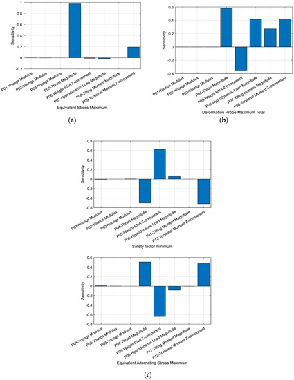 In ANSYS, sensitivities are evaluated based on correlation coefficients [62]. The stronger a result parameter is correlated with a particular input variable, the more sensitive the result parameter is with respect to the input variable.