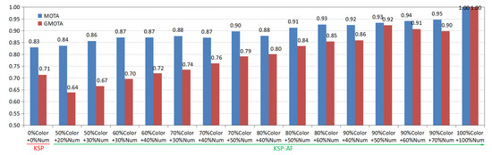 To sum up, our proposed KSP-AF method can avoid more identity switches if given more features. And the basic requirements of extracting 70% color and 50% number information are not very challenging considering that many advanced feature extraction methods are emerging [50,51,52]. In addition, our method is also flexible for taking more features into consideration. More features would make our method more robust to occlusions and miss-detections.
