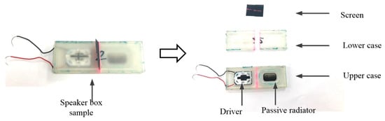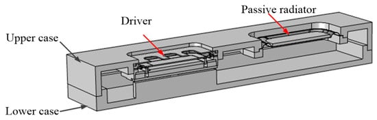 With the rapid development of consumer products such as mobile phones, notebook computers, and MP4 players, audio transducers have been recognized as multifunctional assets with which to increase the convenience of multimedia products. According to the working-principle difference, there are electrostatic [,], balanced armature [,] piezoelectric [,,], and moving coil speakers. A speaker enclosure is used to separate the sound from the front and back to avoid sound cancelation by speakers. A closed speaker enclosure uses a vent structure or passive radiator to improve the low-frequency response.