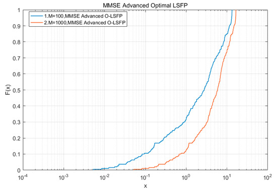 was about 0.25. The simulation results showed that when the number of antennas was about 100, the MMSE-A-O-LSFP had a probability of 15% to reach 10 times the transmission rate gain, but there was still a 10% attenuation probability. The MMSE-A-O-LSFP had a probability of reaching 10 times the transmission rate gain of 25%, and there was no attenuation of the transmission rate gain, and the improved performance is completely improved.