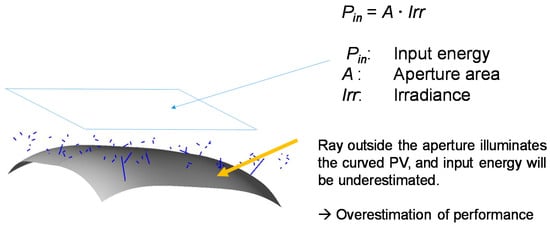 Illustration of the underestimation of the input energy in the measurement of the curved PV module.