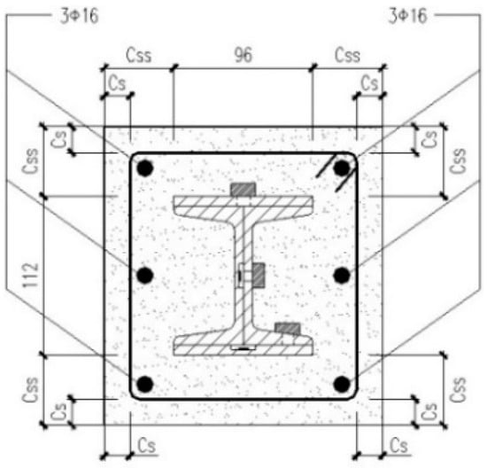 The relative cover thickness is calculated from the ratio of the cover thickness to the height of the section steel (Css/d). The cover thickness refers to the distance between the section steel and the outer surface of RAC. The relationship is shown in the following equations: