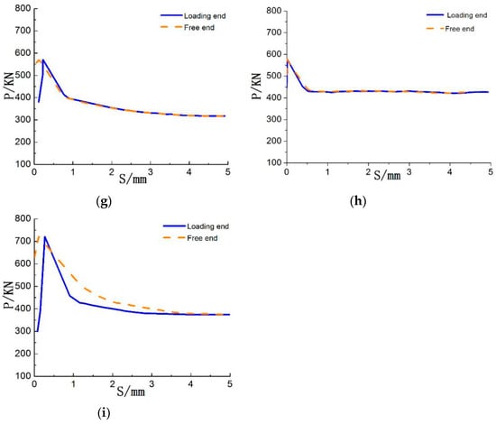 P–S curves of each specimen: (a) SRRC-1; (b) SRRC-2; (c) SRRC-3; (d) SRRC-4; (e) SRRC-5; (f) SRRC-6; (g) SRRC-7; (h) SRRC-8; (i) SRRC-9.