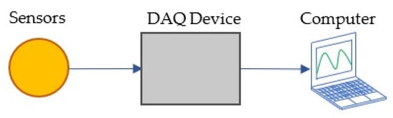 The process of measuring an electrical or physical phenomenon is called data acquisition (DAQ). A DAQ system is normally composed by one or more sensors, a DAQ measurement device or hardware and a computer with programmable software as shown in Figure 2 [4].