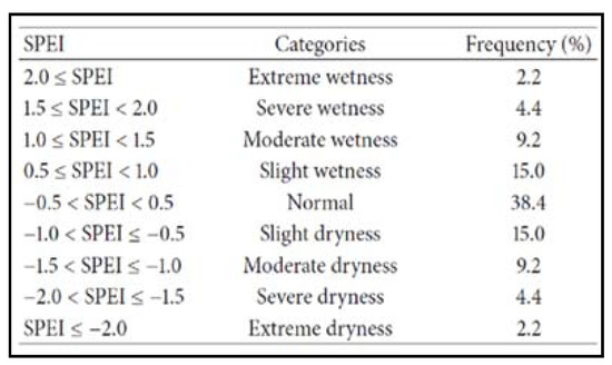 | Zone 1 | SPEI | 4.62 × 10−42 | −2.45 × 10−1 | −8.53 × 10−4 |