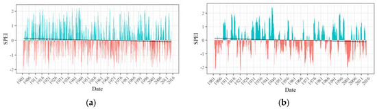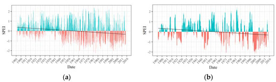 - Tan, C.; Yang, J.; Li, M. Temporal-spatial variation of drought indicated by SPI and SPEI in Ningxia Hui Autonomous Region, China. Atmosphere 2015, 6, 1399–1421. [Google Scholar] [CrossRef]