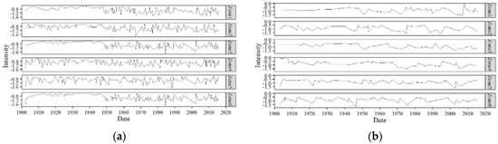 - Joshi, N.; Gupta, D.; Suryavanshi, S.; Adamowski, J.; Madramootoo, C.A. Analysis of trends and dominant periodicities in drought variables in India: A wavelet transform based approach. Atmos. Res. 2016, 182, 200–220. [Google Scholar] [CrossRef]
