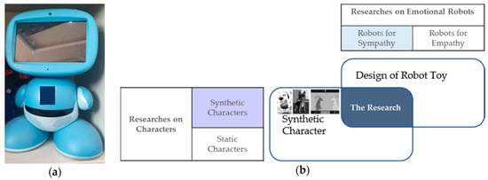 Synthetic character and robot: (a) robot toy abandoned; (b) target area/scope of the research.