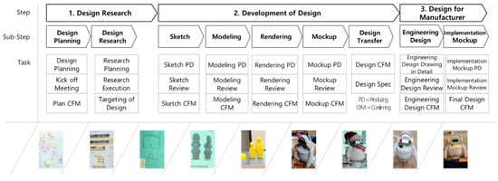 “Buddy” began with the need for a dynamic playground, enabling emotional interchange so that it can play with the child. This background starts with the child’s lack of peer experience which is critical for his/her development. It was introduced in the context of half of the babies are facing the lack of peer experience because their parents are too exhausted from working or childcare in South Korea [16,17]. For lonely children and exhausted parents, an interactive robot toy “Buddy” was designed to become a friend for children. Requirements and needs for the robot toy can be extracted from a series of design their processes.