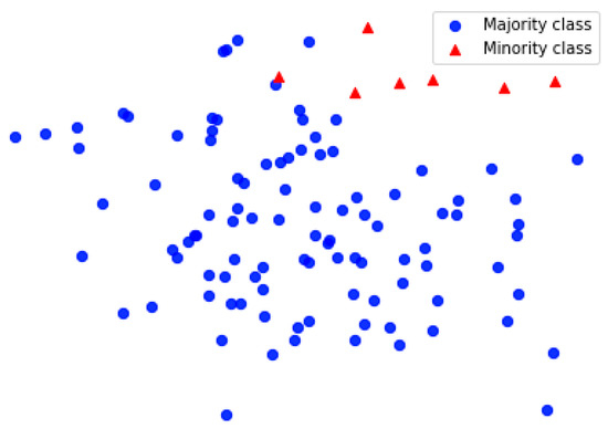 However, most of the previous research of spam detection in social networks has focused on feature extraction, which improves classification performance by combining various features or extracting more features of social network accounts to train classifiers, but overlooks the class imbalance problem in real-world data [11]. From management science to engineering, imbalanced learning is a wide range of research fields [12,13]. As shown in Figure 1, class imbalance means that the number of samples in different categories varies greatly; the majority class (non-spam) has much more samples than the minority class (spam) when a class imbalance problem occurs in the training data, the algorithm typically provides classification results biased toward the majority class due to the increasing prior probability.