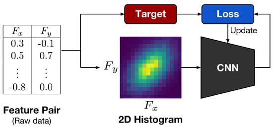 The visualization method : scatter plots are frequently used to visualize dependencies between features. However, scatter plots are usually rendered as images that contain many individually specified pixels. Thus, if we use scatter plots as inputs to CNNs, then we will suffer from the curse of dimensionality. Therefore, we used density-based 2D histograms, which can be considered as compressed scatter plots. Another advantage of density-based histograms is that their representations are almost equivalent for different feature pairs, as long as the features come from the same distribution. However, histograms are often skewed by a small number of outliers. Thus, we remove outliers from each feature before converting the data into a histogram. A sample of a feature is an outlier if , where: