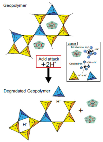 Geopolymer resistance to acid attacks [17]. “Reproduced with permission from Zhu, J.; I Mackie, R.; Riskowski, G.L., Int. Biodeterior. Biodegradation; published by Elsevier, 2018.”
