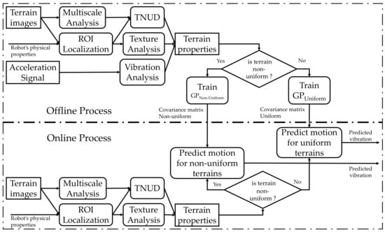 - Castelnovi, M.; Arkin, R.; Collins, T. Reactive speed control system based on terrain roughness detection. In Proceedings of the International Conference on Robotics and Automation, Barcelona, Spain, 18–22 April 2005; pp. 891–896. [Google Scholar]