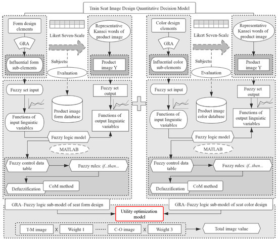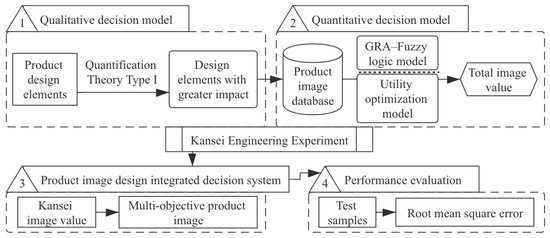 This section may be divided into product image design qualitative decision model, quantitative decision model, integrated decision system and performance evaluation. Firstly, using the Product image design qualitative decision model, the influential design elements for the product image are identified based on Quantification Theory Type I. Secondly, the quantitative decision model is utilized to predict the product total image. GRA–Fuzzy logic sub-models of influential design elements are built up separately. After that, utility optimization model is applied to obtain the multi-objective product image. Thirdly, the product image design integrated decision system is completed to optimize the product image design in the process of product design. Finally, the performance of the system is evaluated by using the root mean square error.