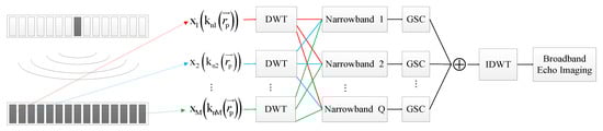 For narrowband echo signals, the adaptive beamforming is an extension to the DAS. As illustrated in Figure 2, firstly, proposed beamforming uses the discrete wavelet transform (DWT) to divide the broadband echo signal into a set of narrowband signals. Then, the sets of narrowband signals after DAS are fed to the adaptive processor GSC, consequently, provides a set of adapted apodization weights for each wavelet subband. Later, beamformed narrowband ultrasonic echo signals are coalesced. Finally, the inverse discrete wavelet transform (IDWT) is adopted to deal with the coalesced broadband echo signals, and the broadband echo imaging will be achieved.
