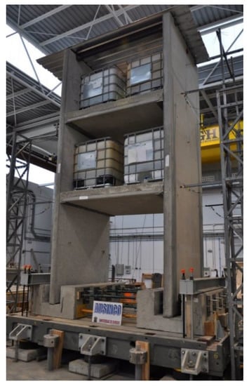 Third, there are the tests carried out on a shake table, which introduce a true dynamic excitation in the base of the structure. This is the most realistic technique for the seismic testing of structures, since the displacements (and therefore, the accelerations) are applied at the base and the structure is subjected to the inertial forces. However, it is a very complex test because of all the equipment required. In addition, its interpretation is also difficult, since a large number of structural mechanisms are involved in the seismic response. Therefore, this type of tests is usually carried out at the end of a much more extensive testing campaign [,,,,,,,].