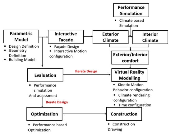 The comprehension and successful application of motion to facades are conducted through modeling, simulation, and making rapid design iterations in the design phase of the façade. Façade design that involves motion requires being designed differently from conventional building systems, as the façade behaves like a mechanical product. Hence, the modeling process of facades that involve motion requires digital and physical models are complementary to presenting the motion in the façade efficiently. Designers are required to focus on the design activities to enhance productivity due to the complexities in modeling physical and digital models concurrently [15].