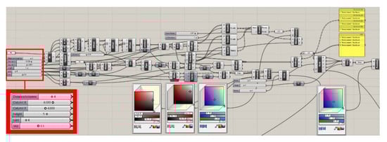 Parametric design in this research is implemented on the building and the façade in relation to the environment. As the building is a prototype for analysis, the design variables are controlled through the mathematical sliders that change the properties of the model geometry, such as height, width, and the number of floors automatically by altering the value of the corresponding design element, as seen in Figure 4. This process allows for the designer to iterate the model based on the intention of the space by a simple change in the value of any sliders.