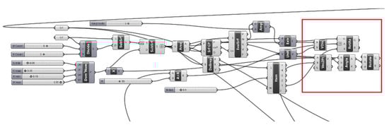 Rotation motion in facades at the basic level is left to right horizontally or vertically at angles that range from −90 to 90 degrees, as we have studied in the model of this research. The rotation beyond the range of the angles stated above will collide with the building geometry. The rotation angles require a mathematical equation that will have to be substituted after each rotation, which can be long and time-consuming. The parametric algorithm simplifies this process through components that rotate based on changing values that are controlled by sliders.
