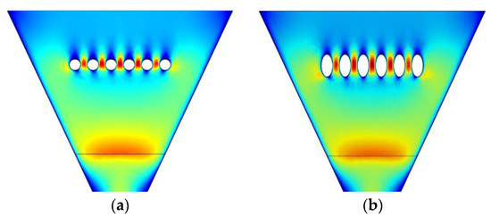 This thickness is reduced in Figure 11a,b for circle and ellipse, respectively, the outlet velocity profile, just filtering the velocity data to calculate the root-mean-square (RMS) of percentage deviation to determine the flow uniformity as follows: