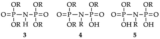 - Von Riesel, L.; Pitch, G.; Ruby, C. Ester der Imidodiphosphorsäure. Z. Anorg. Allg. Chem. 1977, 430, 227–233. [Google Scholar] [CrossRef]