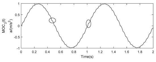 As shown in Figure 2, the original signal x(t) is decomposed into three MOC components and a monotonic residue, and the three MOC components are corresponding to the x1(t), x2(t), and x3(t), respectively. Therefore, LOD, as a self-adaptive time-frequency analysis method based on the characteristics of the signal itself, can reflect the essential characteristics of the signal. However, as illustrated in Figure 3, the locally enlarged view of MOC3(t) shows that the waveform of MOC3(t) is evidently jagged and exhibits poor smoothness. The main reason is that the use of piecewise linear transformation leads to an unsmooth local mean curve, which causes the gradual accumulation of errors with an increasing number of iterations, thereby affecting the decomposition accuracy. The above decomposition error can be eliminated or reduced if a suitable interpolation method is identified to replace piecewise linear transformation and to obtain a local mean curve with enhanced smoothness. Previous studies [25,26] proposed the adoption of the rational spline interpolation instead of cubic spline interpolation and moving average to calculate local mean curves in EMD and LMD, respectively, which achieved good results. Accordingly, this study intended to introduce the rational spline interpolation to replace the piecewise linear transformation, so as to improve the poor smoothness of the LOD decomposition.
