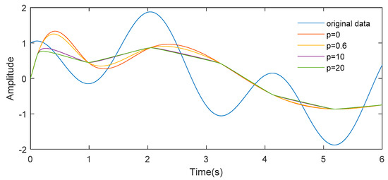 The shape of the local mean curve can be changed by adjusting the pole parameter p, as shown in Figure 4. It can be seen that with the change of p, the degree of tightness and smoothness of the local mean curve has also changed accordingly. Thus, the result and precision of subsequent decomposition will be affected.