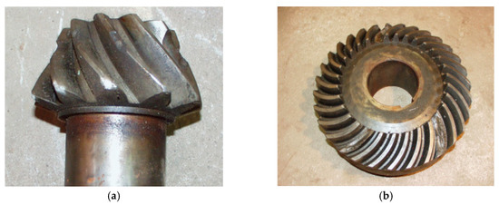 The worn gear in fan gearbox: (a) the worn gear 1; (b) the worn gear 2.