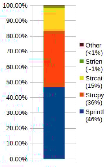 There are many types of buffer overflow attacks, such as write attacks, data manipulation/corruption attacks, and read attacks [11]. One of the possible reasons behind this plethora of overflows is C being inherently unsafe. That is, it allows low-level data and memory manipulation but it lacks the corresponding low-level security checks. One example of this are array and pointer references. None of them are automatically bounds-checked, therefore relegating security to the programmer’s skills. Besides, many of the standard C library functions such as gets(), scanf() or strcpy() are vulnerable [12,13,14]. Although C is one unsafe programming language whose misuse could lead to buffer overflows, it is not the only one. Buffer overflow vulnerabilities occur in languages that provide no built-in protection against out of bounds memory accesses such as C++ [15]. This leaves us with a single and clear conclusion: buffer overflow is still an ever-present vulnerability and it seriously jeopardizes security.