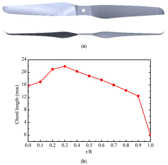 Rotor details: (a) Rotor profile; (b) chord length distribution.