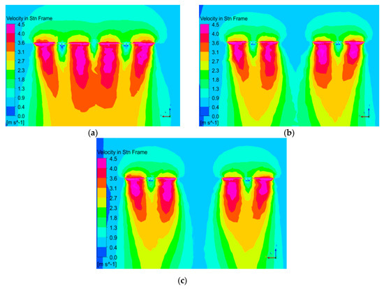 Figure 10 shows the velocity distribution between adjacent rotors with different rotor spacing.