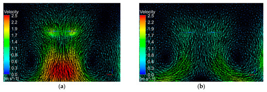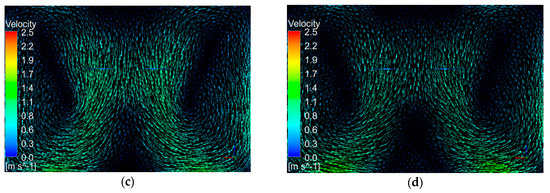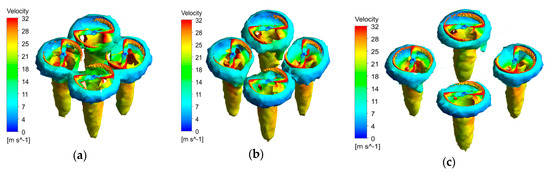 Figure 11 shows the velocity vector distribution of adjacent rotors with different rotor spacing.